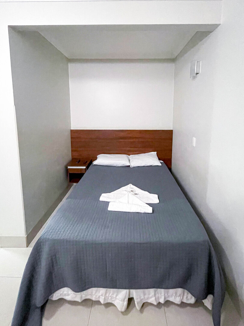 Projetado para duas pessoas, o Quarto Standard Duplo dispõe de uma cama de casal confortável. Está equipado com frigobar, televisão, ar-condicionado, telefone e Wi-Fi gratuito. Comodidades como sabonete, shampoo e toalhas estão à disposição dos hóspedes.
